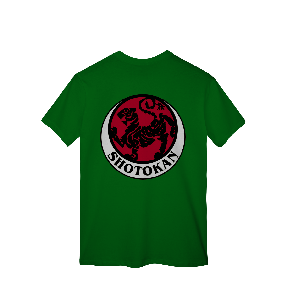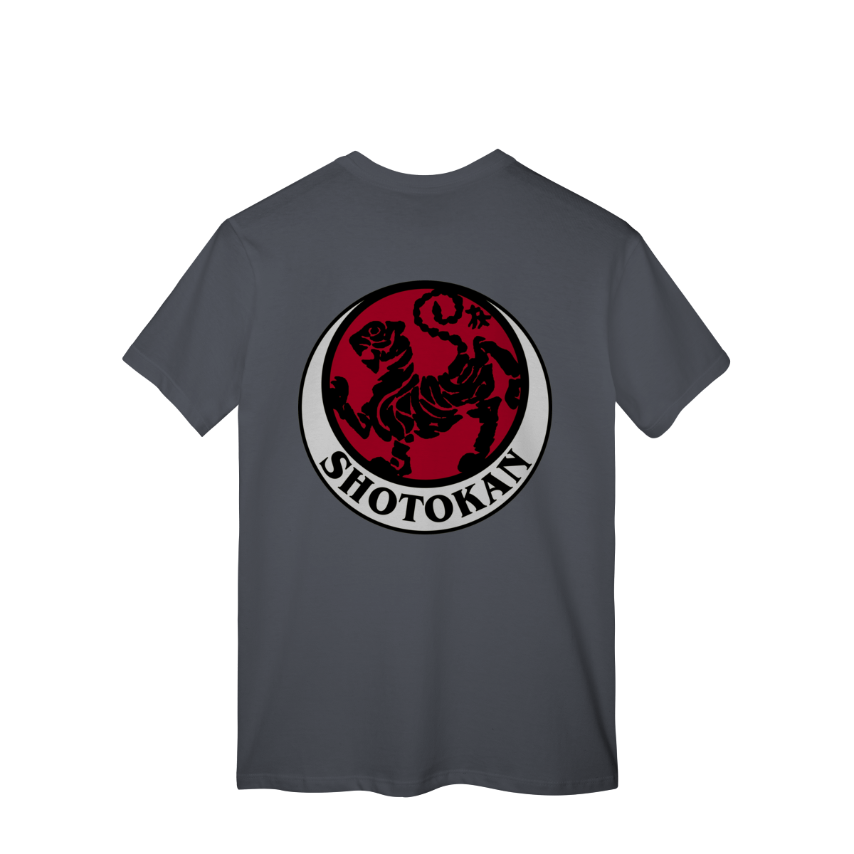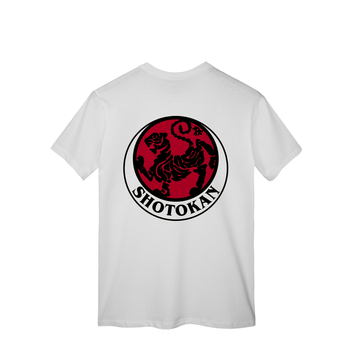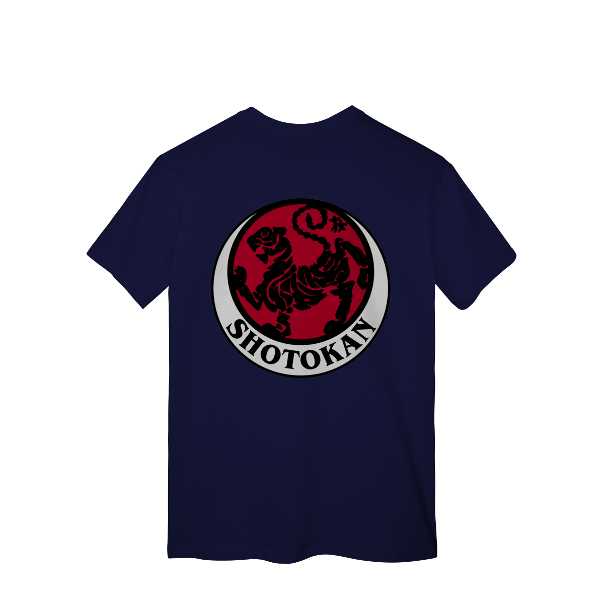 Esta camiseta é feita para quem carrega disciplina no corpo e foco na mente. Brasão do estilo de karatê shotokan em preto e vermelho.